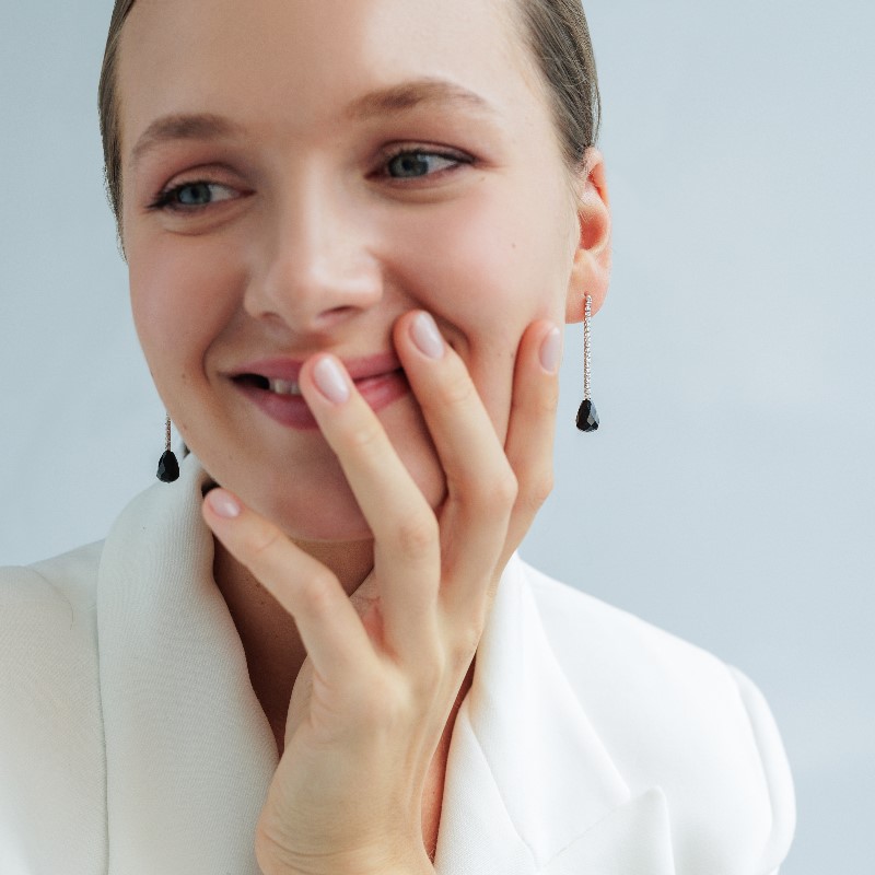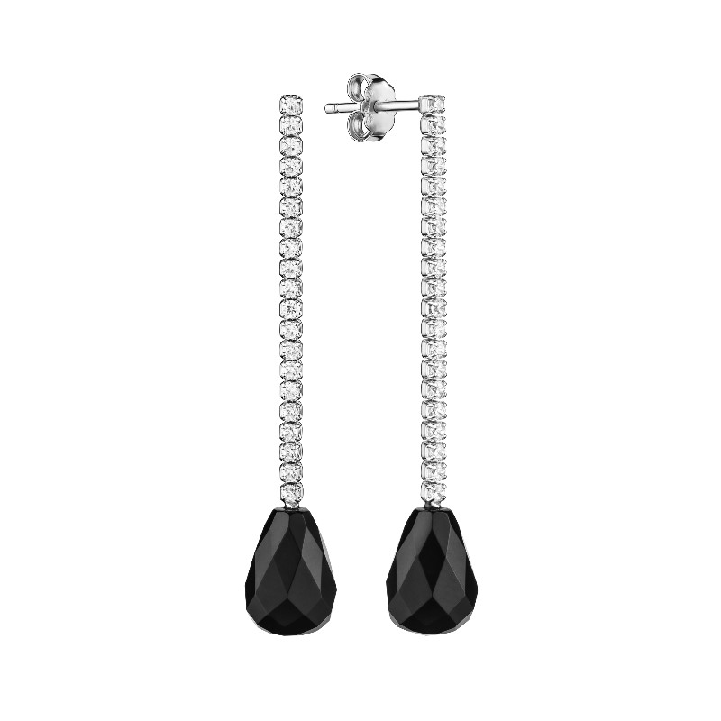 Lieliski sudraba auskari ar melno oniksu un mirdzošiem cirkoniem lieliski papildinās Jūsu tēlu svētkos !