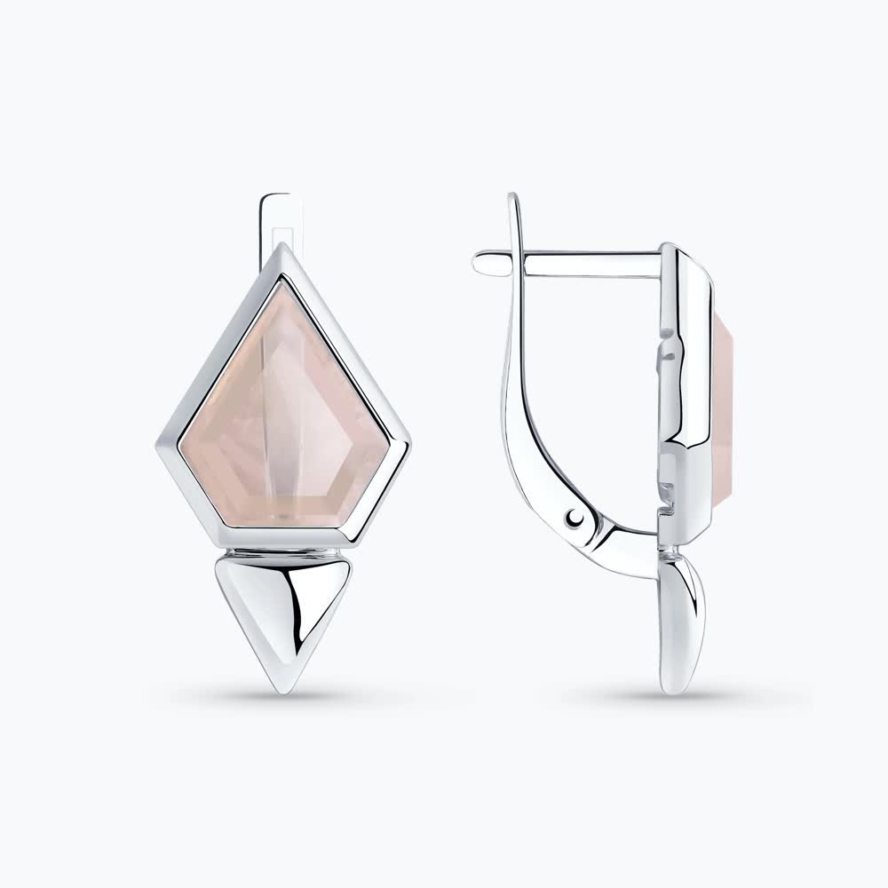 Moderni, ģeometrisku formu sudraba auskari ar rozā kvarcu lieliski papildinās Jūsu tēlu!