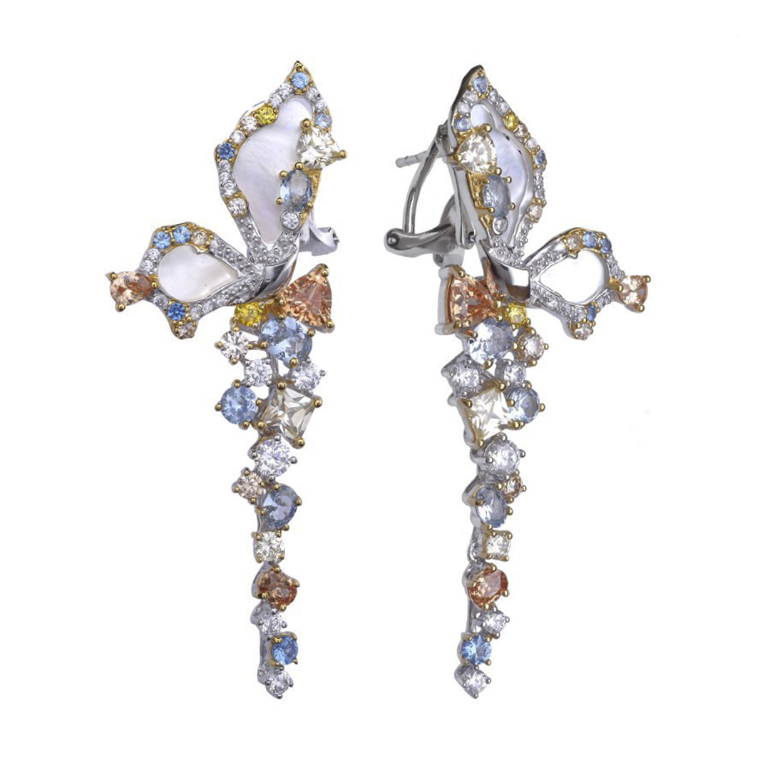925 proves sudrabs, rodija pārklājums,  krāsaini kubiskie cirkoni, perlamutrs.