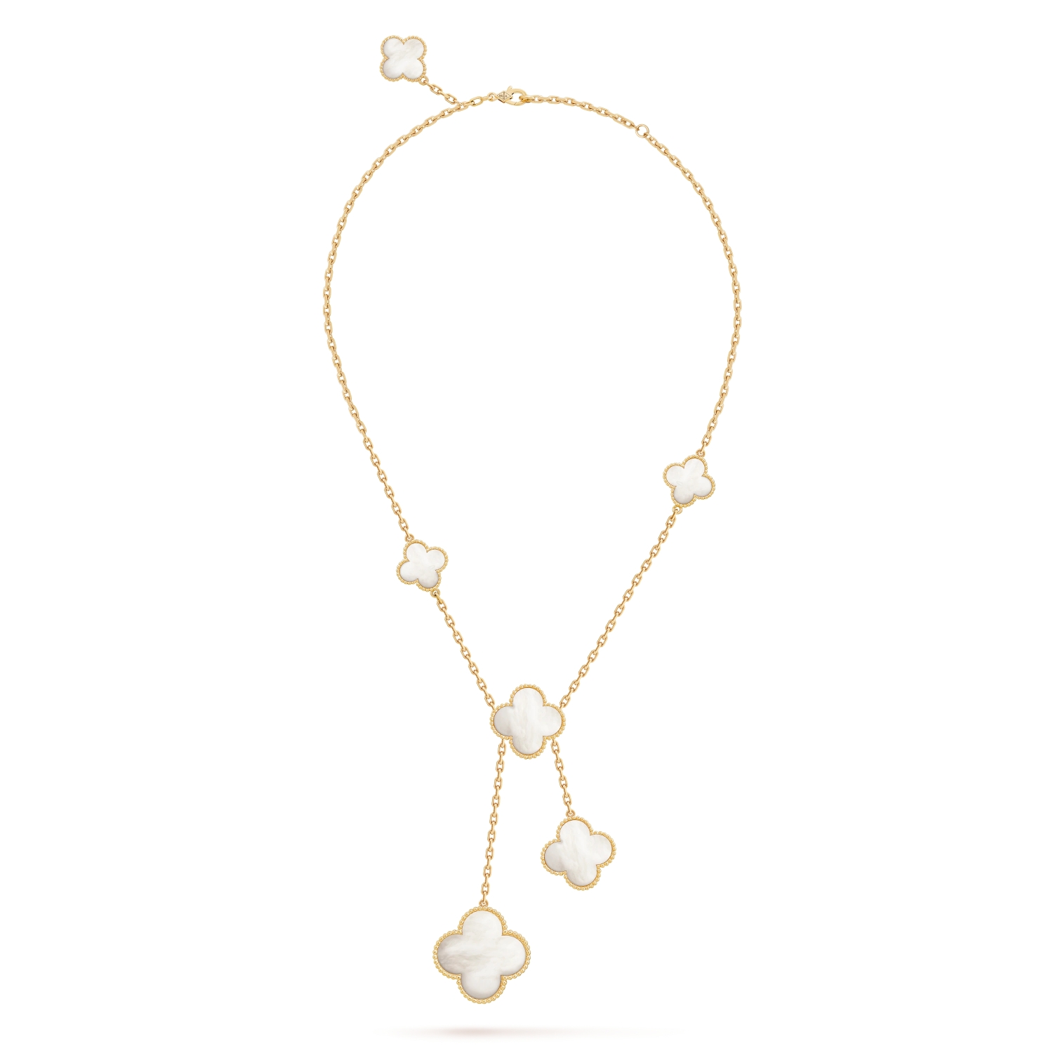Kaklarota ar popuāra āboliņa formas piekariem kurus rotā perlamutrs, lieliski papildinās Jūsu svētku tēlu.