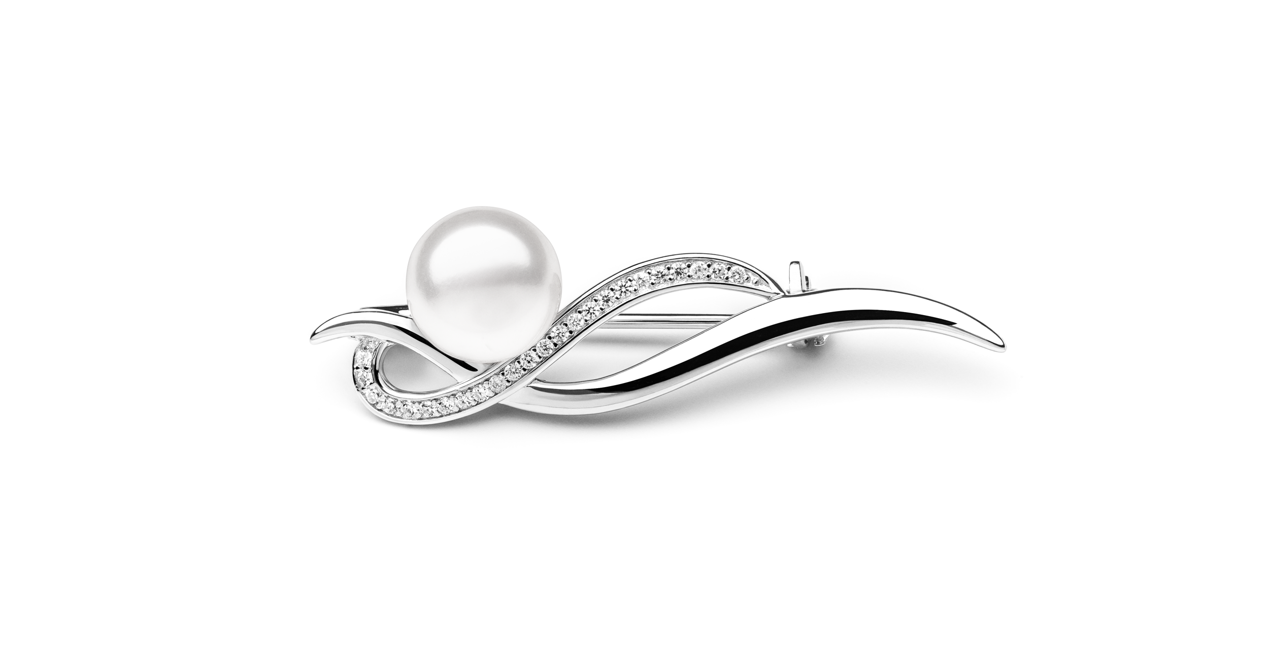 Lakoniska, bet ļoti pamanāma piespraude ar saldūdens pērli un mirdzošiem cirkoniem ir ideāli piemērota eleganta tēla veidošanai.