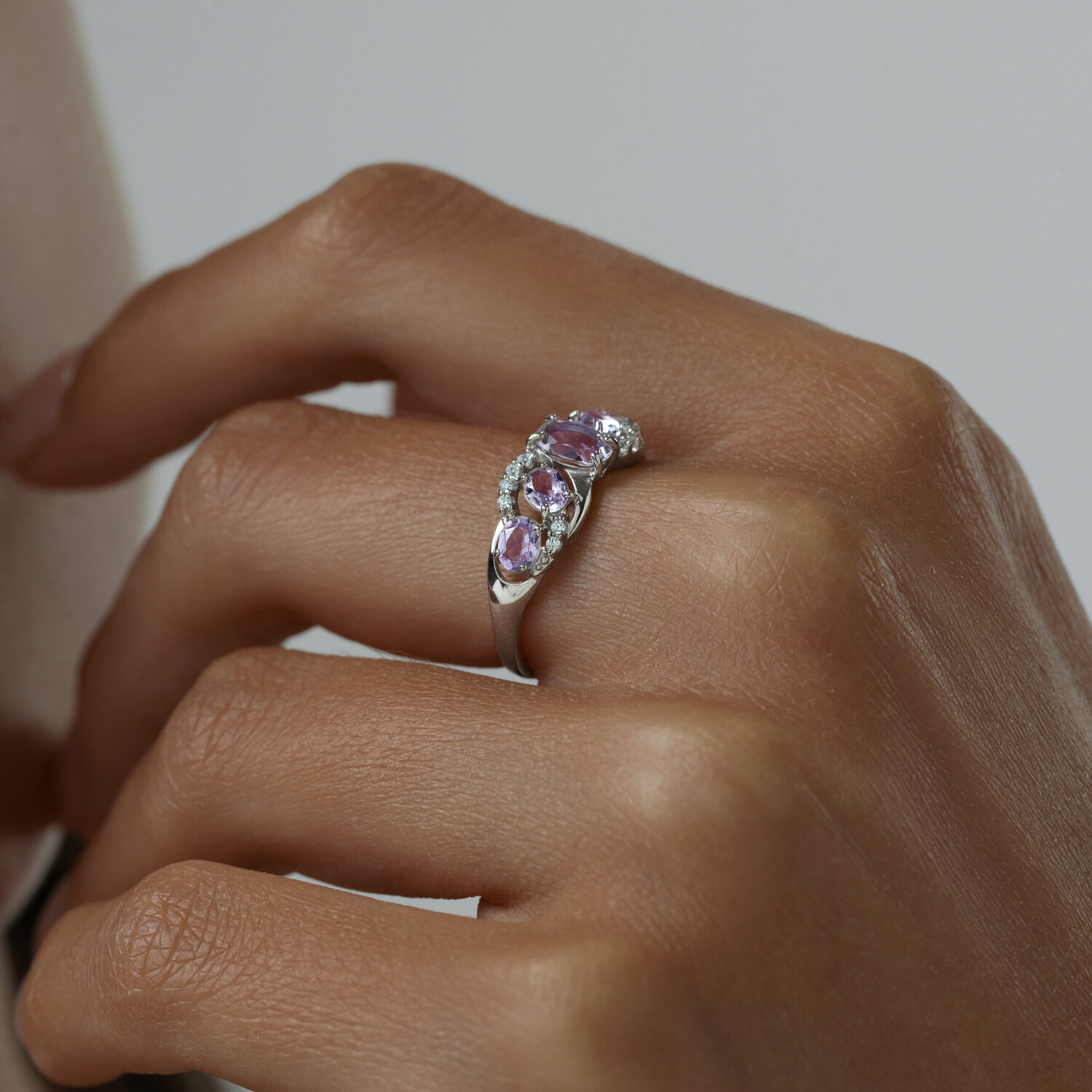 Ja dodat priekšroku sudraba rotām,tad, šis gredzens ar ceriņkrāsas ametistiem lieliski papildinās Jūsu tēlu!