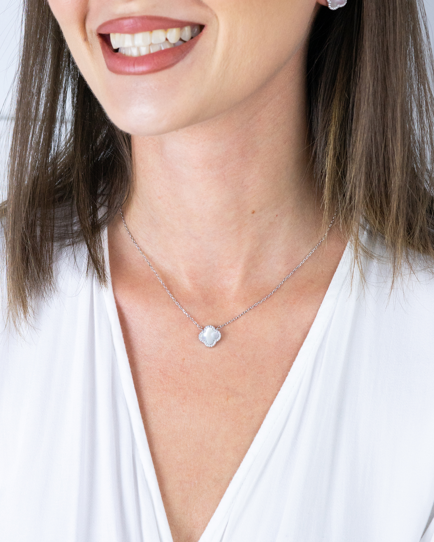 Smalka kaklarota ar perlamutru un mirdzošiem cirkoniem no sudraba.